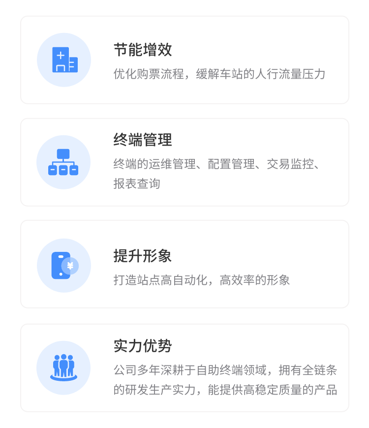 • 通過自助終端的部署實現乘客自助售取票、車站微信服務號線上售票、查詢余票等功能,提升乘客購票體驗的同時緩解車站的客運壓力;
