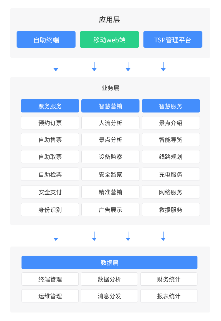 智慧景區(qū)解決方案是以實現(xiàn)景區(qū)信息化、智能化為核心的解決方案,利用物聯(lián)網(wǎng)、云計算、大數(shù)據(jù)分析等技術(shù)從景區(qū)管理、營銷推廣以及游客體驗三方面,助力景區(qū)早日實現(xiàn)智慧管理、智慧營銷、智慧服務(wù)的全面智慧化。集成了多平臺繳費方式,支持人臉識別,身份證,指紋等認(rèn)證方式,提供票務(wù)售取,人行測溫,紀(jì)念品制作,緊急呼叫等多功能服務(wù),實現(xiàn)節(jié)能增效,提升景區(qū)形象和便捷性,實現(xiàn)降本增效。