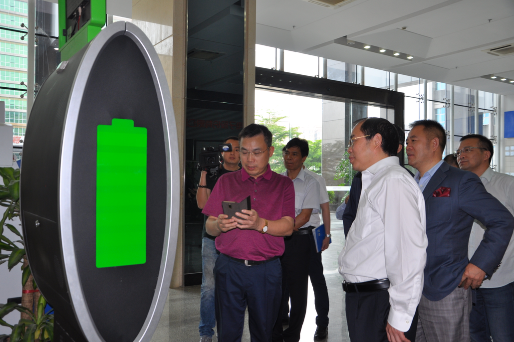 總裁曾勝強先生向譚小平部長一行進行公司產品體驗(共享充電設備等)