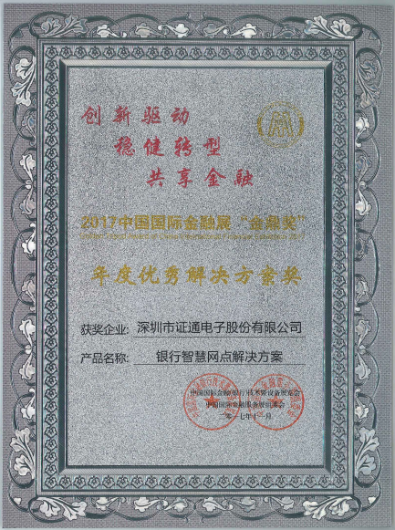 近日“金鼎獎”的各項大獎正式出爐,證通電子的銀行智慧網點解決方案“年度優秀解決方案獎”