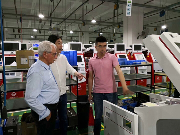 KEBA是全球最大的外幣兌換機廠家,和中國印鈔造幣總公司合資成立了中鈔科堡,證通電子和KEBA是戰略合作伙伴。其創始人兼董事長?Karl Kletzmaier2018年4月23日到訪證通,雙方大老板敘舊誼,談新情,探討新零售和工業自動化領域的新合作。