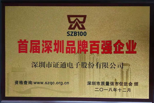 2018年12月3日,深圳市品牌建設促進大會在市民中心召開,副市長王立新、中國質量協會副會長兼秘書長段永剛、深圳市質量強市促進會會長馬蔚華出席并致辭。會上發布并表彰了首屆“深圳品牌百強”企業,證通依托于多年來在相關行業的品牌積累和穩健發展,位列百強。