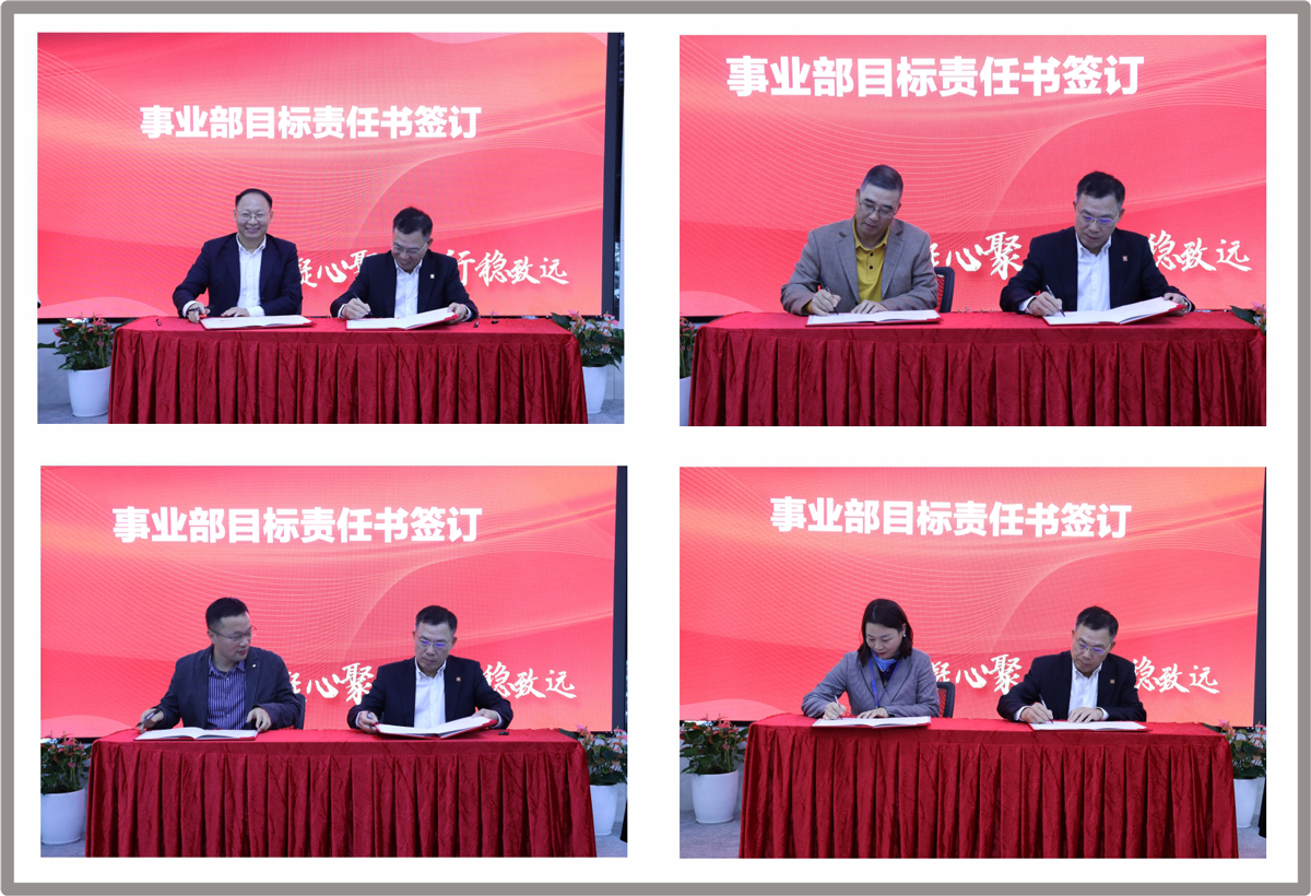 接下來,總裁曾勝強分別與各事業部負責人簽訂了2022年度經營目標責任書,并合影留念。