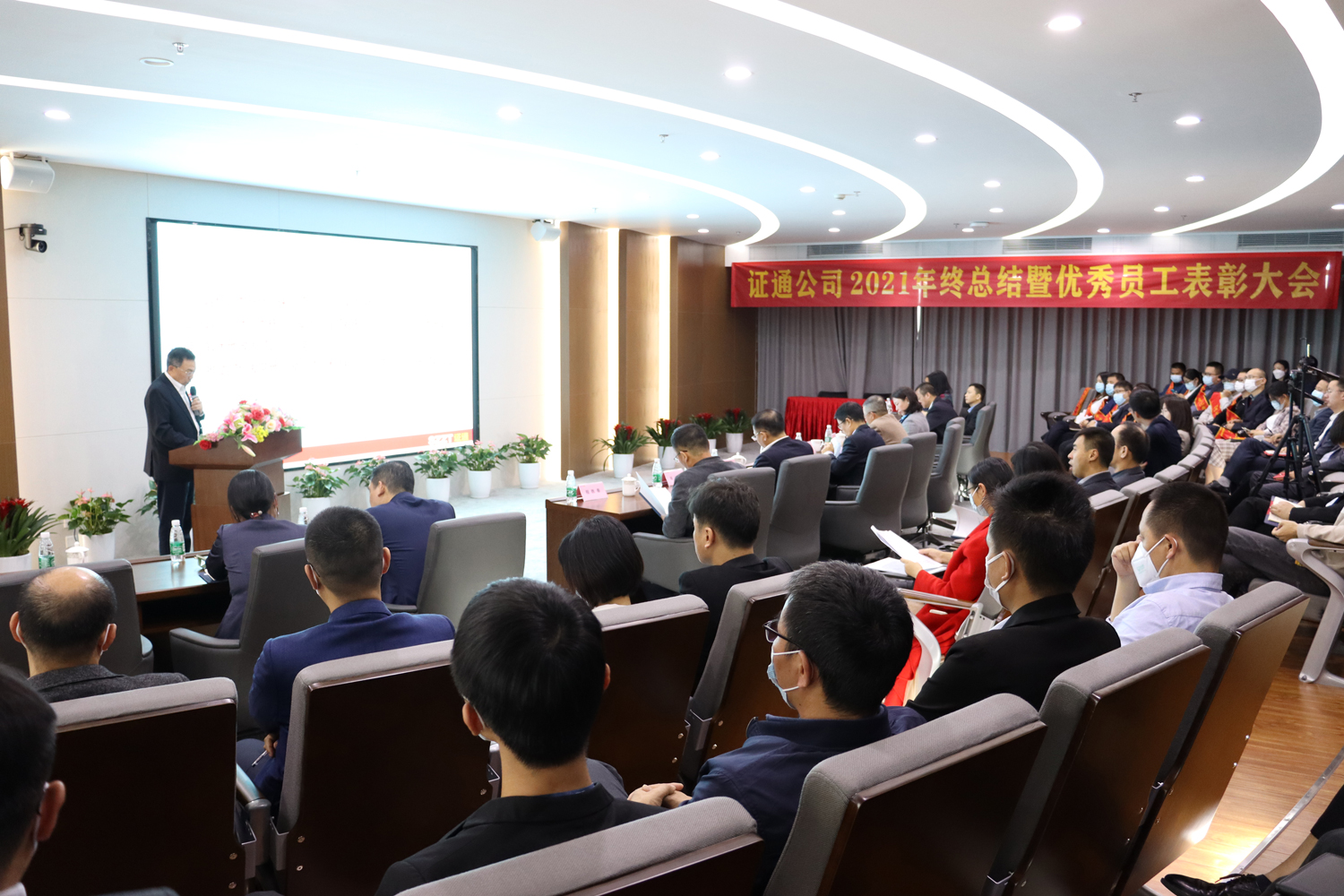 他指出,在疫情持續影響經濟下行的壓力下,包括公司高管在內的很多干部、很多員工在過去一年的工作中,嚴格按照上年度年終工作會議上提出的“突出主業、盤活存量、搞活機制、控制風險”指導思想開展工作。在嚴控風險的基礎上,調整預算、優化收入結構,引進高級管理人才等方面做出了努力,保障了公司的業績,實現了增發工作的落地、完成了公司展廳的建設,很好地達成了年內計劃的多項重點目標。更是在2021年能源政策調整中和海外的疫情中頂住壓力,穩住了市場,這都充分表現出了證通人高度負責的精神和主人翁意識,彰顯了證通人的凝聚力和戰斗力!