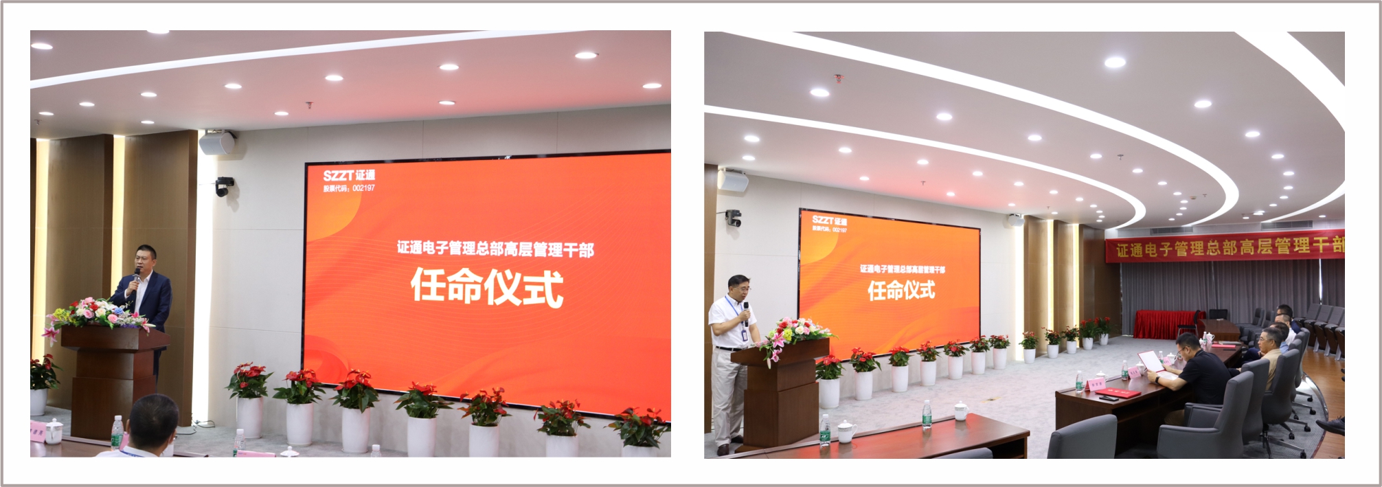 為符合公司戰略發展和業務的需要,為集團選拔出優秀的管理干部。4月29日上午9時,證通電子“管理總部高層管理干部任命儀式”在H棟12樓階梯會議室隆重舉行,這是證通歷史上首次舉辦的干部任命儀式。公司董事長、總裁曾勝強,公司常務副總裁、IDC云計算事業部總經理楊義仁,公司副總裁、董事會秘書、自助科技事業部總經理傅德亮,公司財務總監程峰武,總裁助理李華峰,安全支付事業部總經理程勝春,光電事業部總經理胡艷平,新上任的總裁助理薛寧、唐佳,人力資源總監張文波以及全集團中層及以上管理干部通過線上和線下的方式共同出席了任命儀式。
