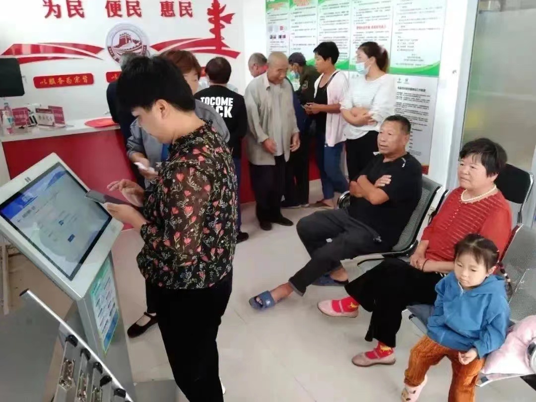 ▲河北滄州滄縣八義莊村居民使用“裕農通”互動觸摸屏進行自助繳費