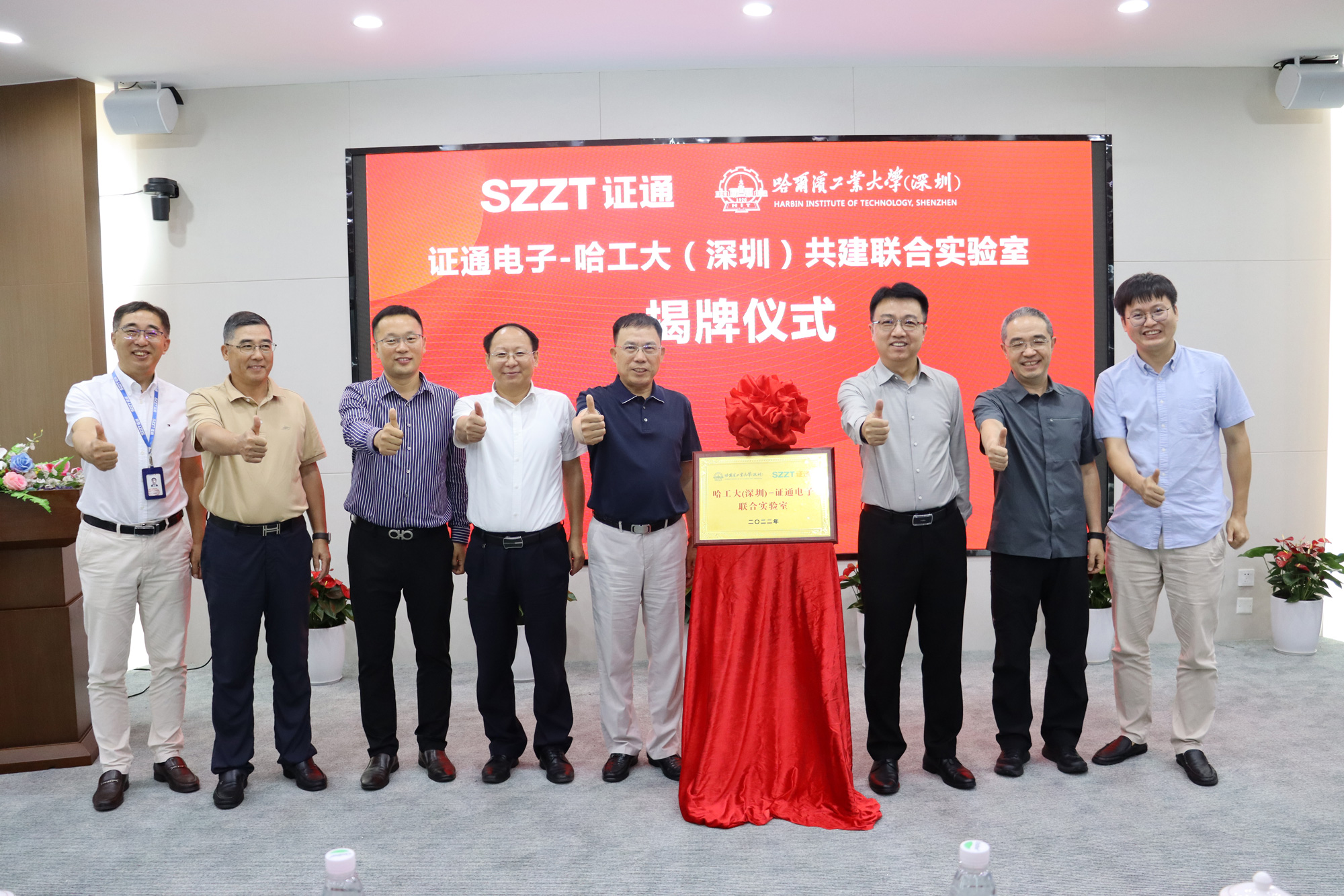 6月16日下午,深圳市證通電子股份有限公司(以下簡稱證通電子)總裁曾勝強與哈爾濱工業大學(深圳)特聘校長助理張民在證通電子產業園共同為“證通電子-哈工大(深圳)聯合實驗室”揭牌。