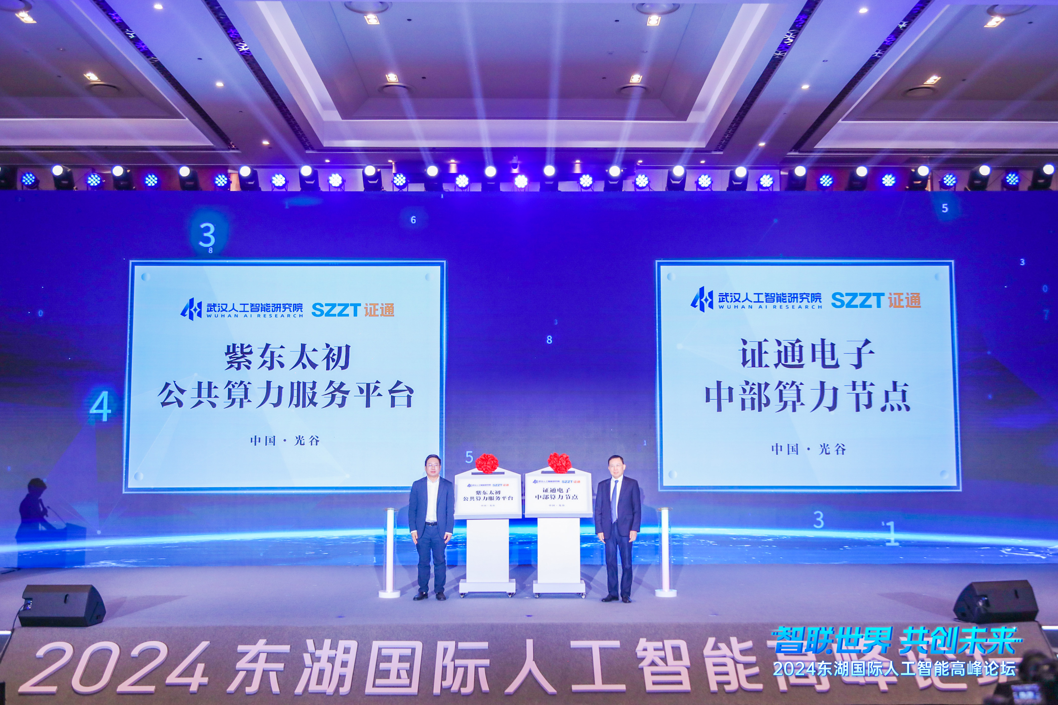 會(huì)上,證通電子董事長(zhǎng)兼總裁曾勝?gòu)?qiáng)發(fā)表主題演講——“專注平臺(tái)賦能,共建智算新生態(tài)”,并與武智院一道為“紫東太初公共算力服務(wù)平臺(tái)”和“證通電子中部算力節(jié)點(diǎn)”正式揭牌。